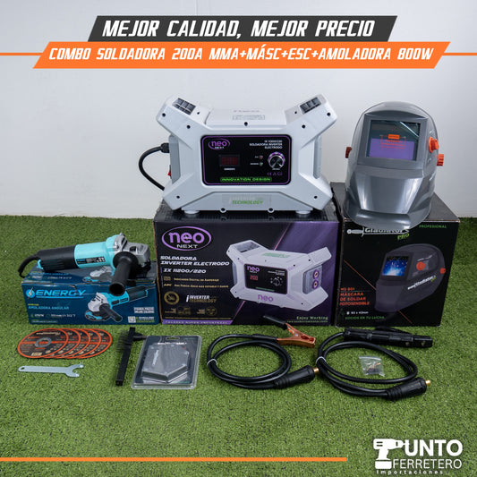 combo soldadora neo 200A + amoladora+ escuadra 800W