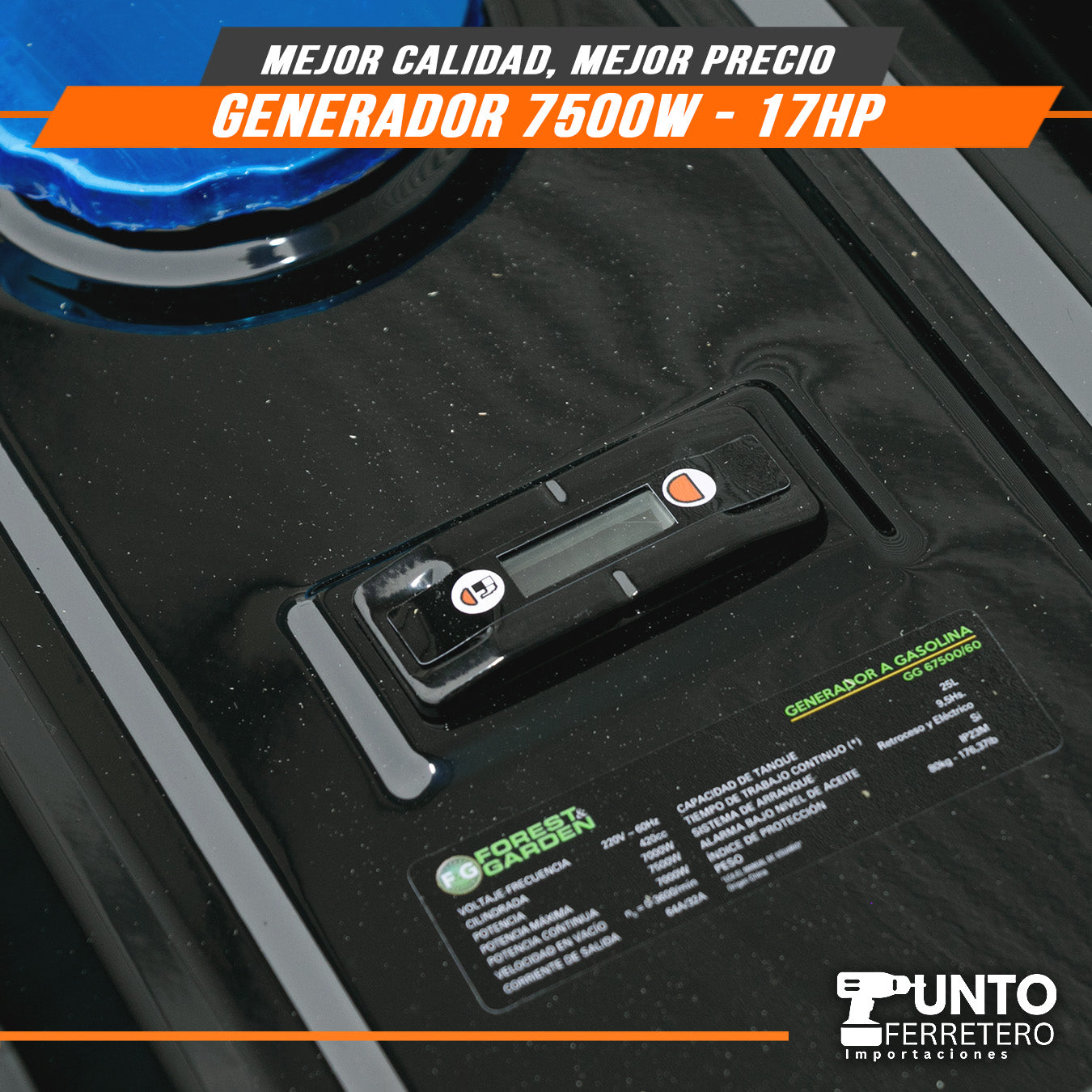 GENERADOR ELECTRICO 7500W MOTOR 4 TIEMPOS 420 CC 25 LITROS forest & garden