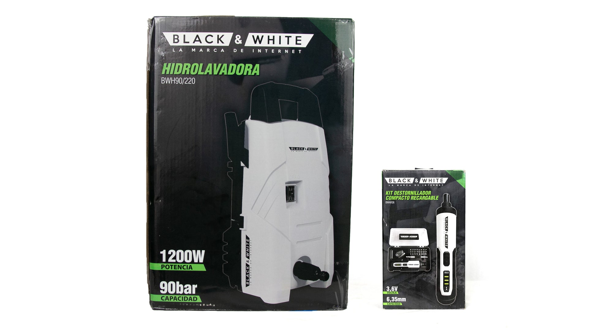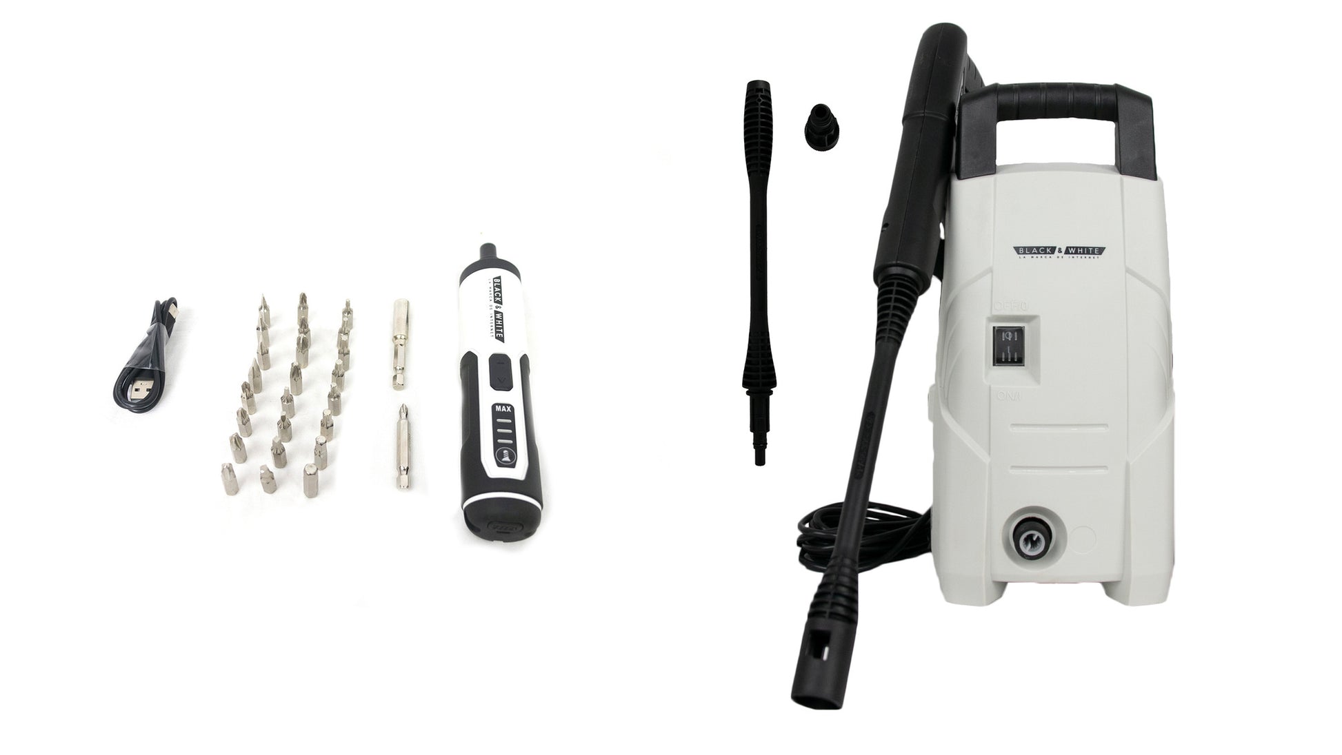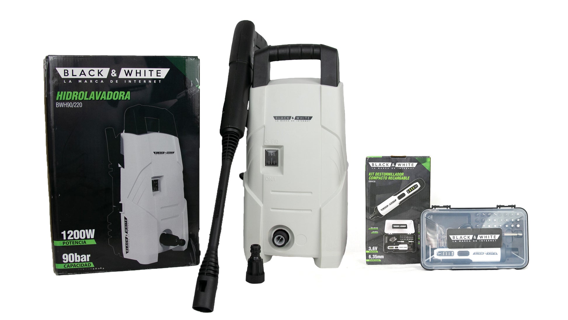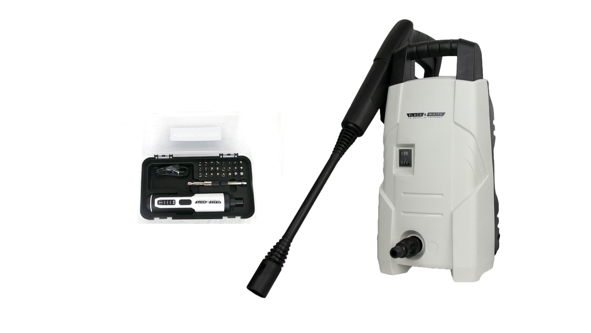 HIDROLAVADORA + KIT DESATORNILLADOR COMPACTO RECARGABLE – BLACK & WHITE