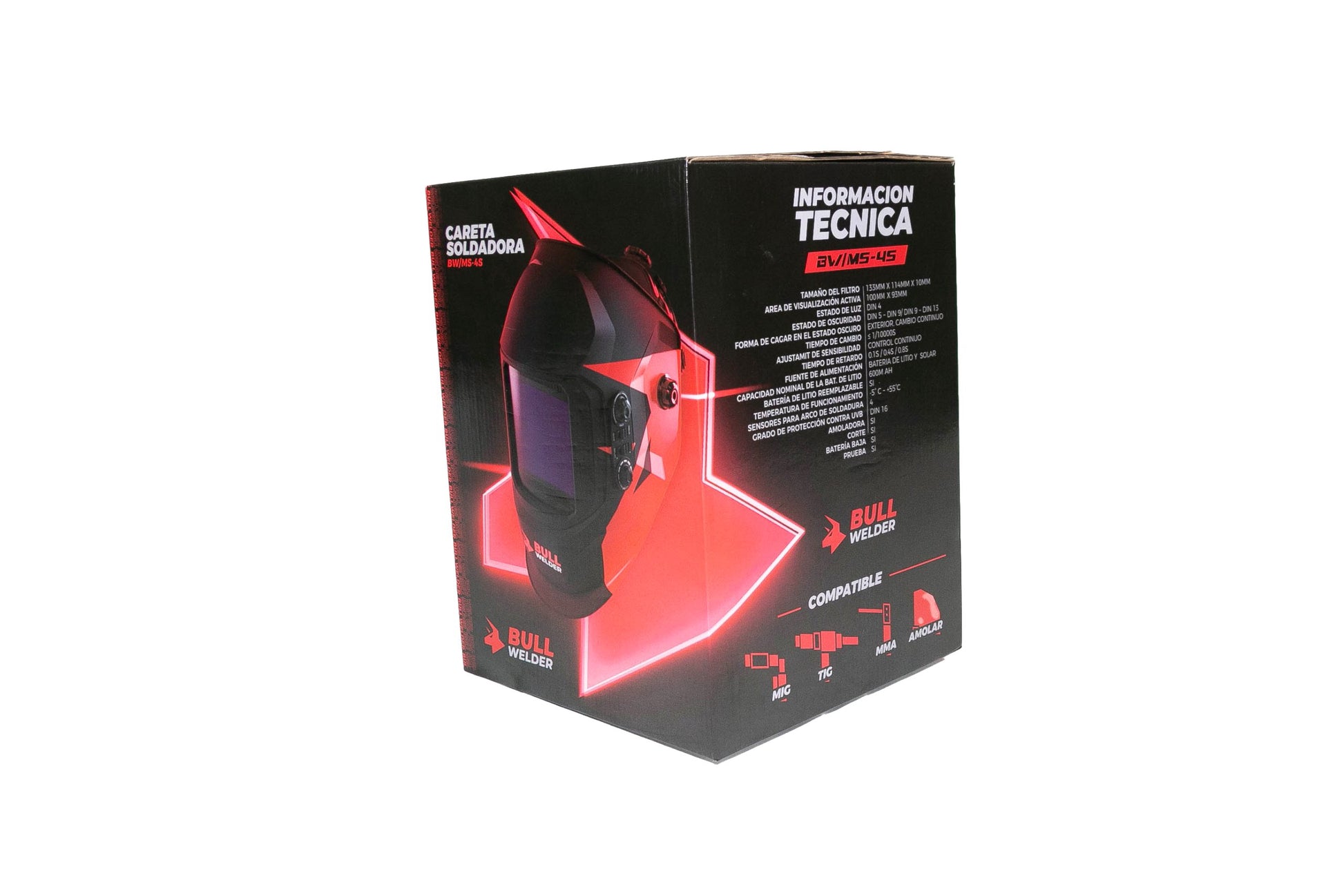 La careta electrónica BW/MS – 4S está diseñada para quienes exigen lo mejor en protección visual. Con un amplio campo de visión, oscurecimiento ajustable y sensores ultra precisos, esta careta se adapta a todo tipo de trabajos con precisión y seguridad. ¡Haz que cada soldadura cuente!
