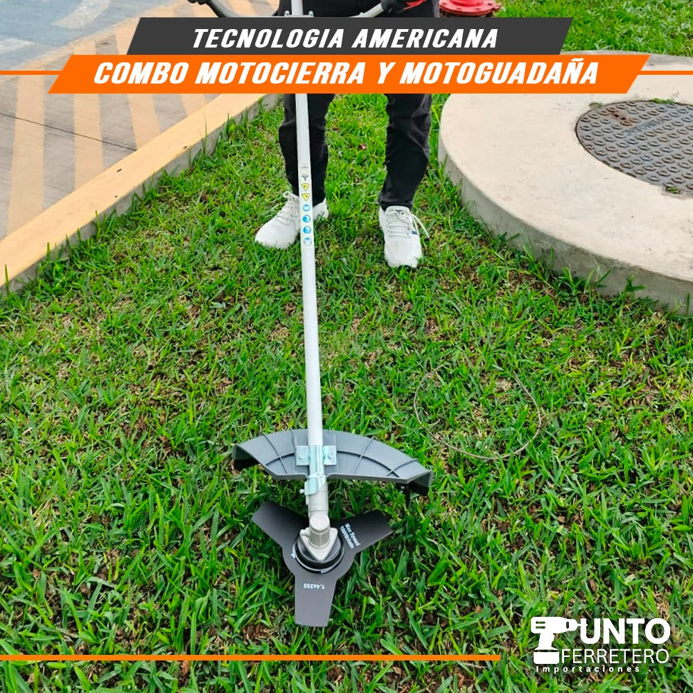 Incluye pita de nylon, disco de 3 puntas y disco circular para cortar troncos pequeños, adaptándose a diversas tareas de corte.