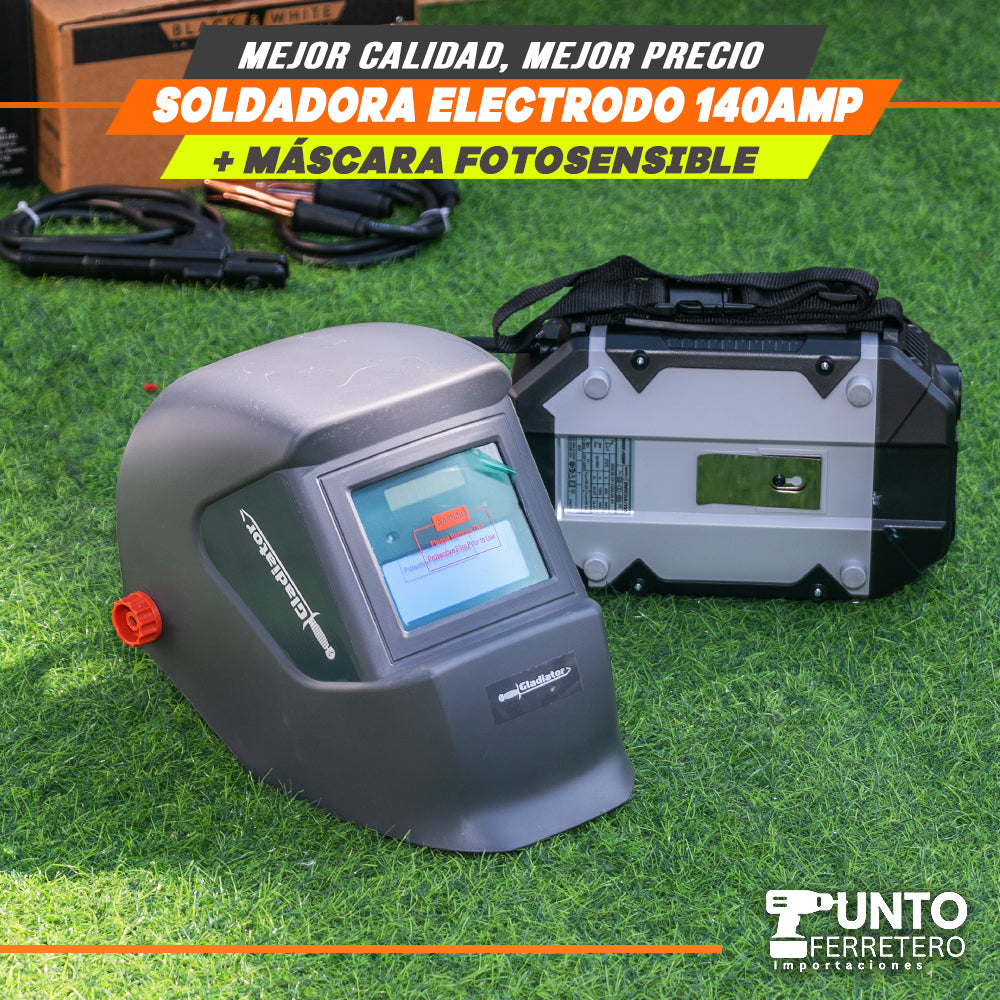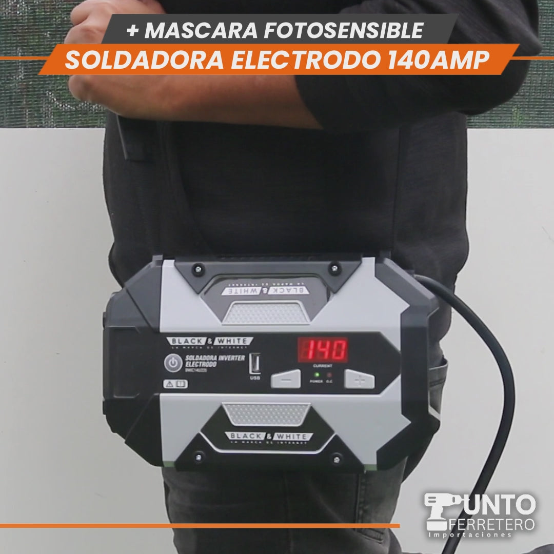 soldadora black&white 140 amperios mma + mascara 2 sensores