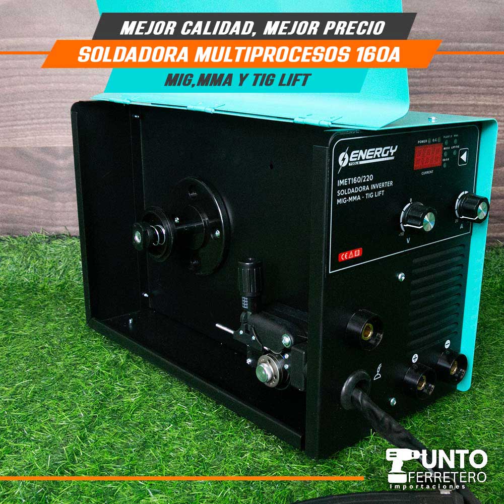 Soldadora Multiprocesos 160A Energy (mma,mig Mag,lig tif)+ 1kg alambre flux suelda con gas/sin gas