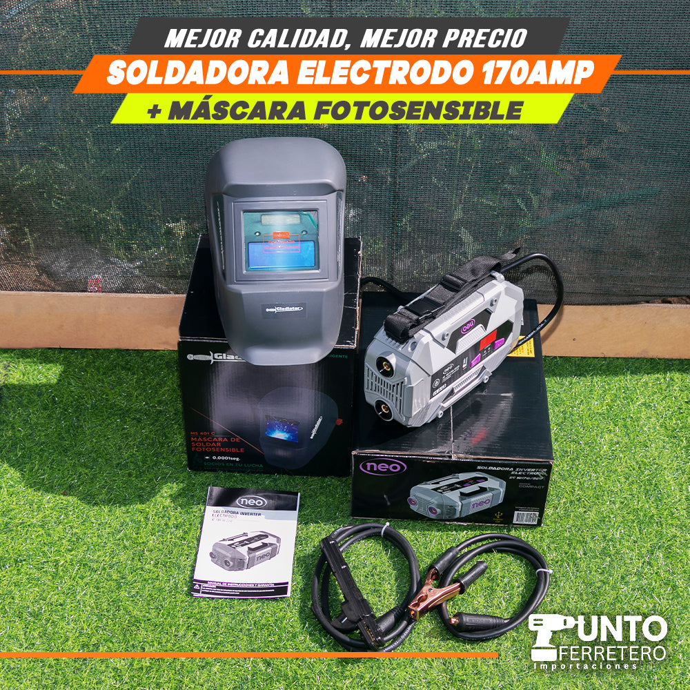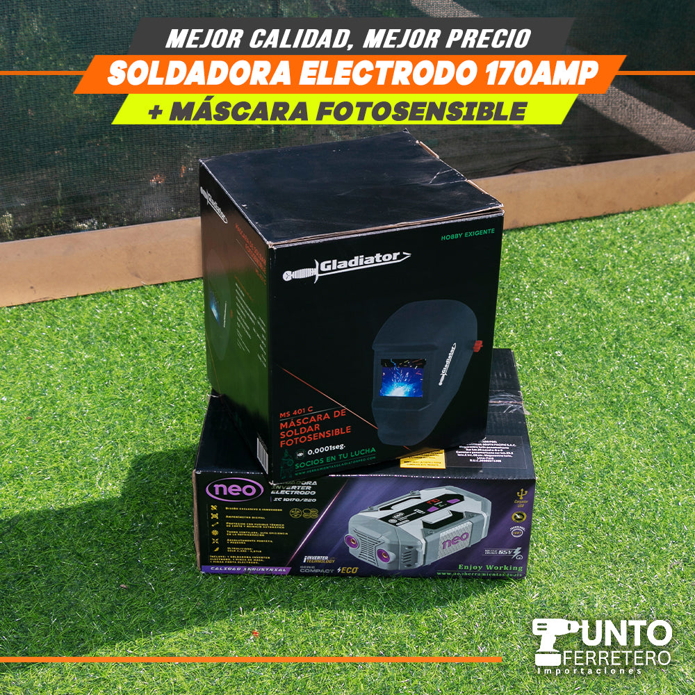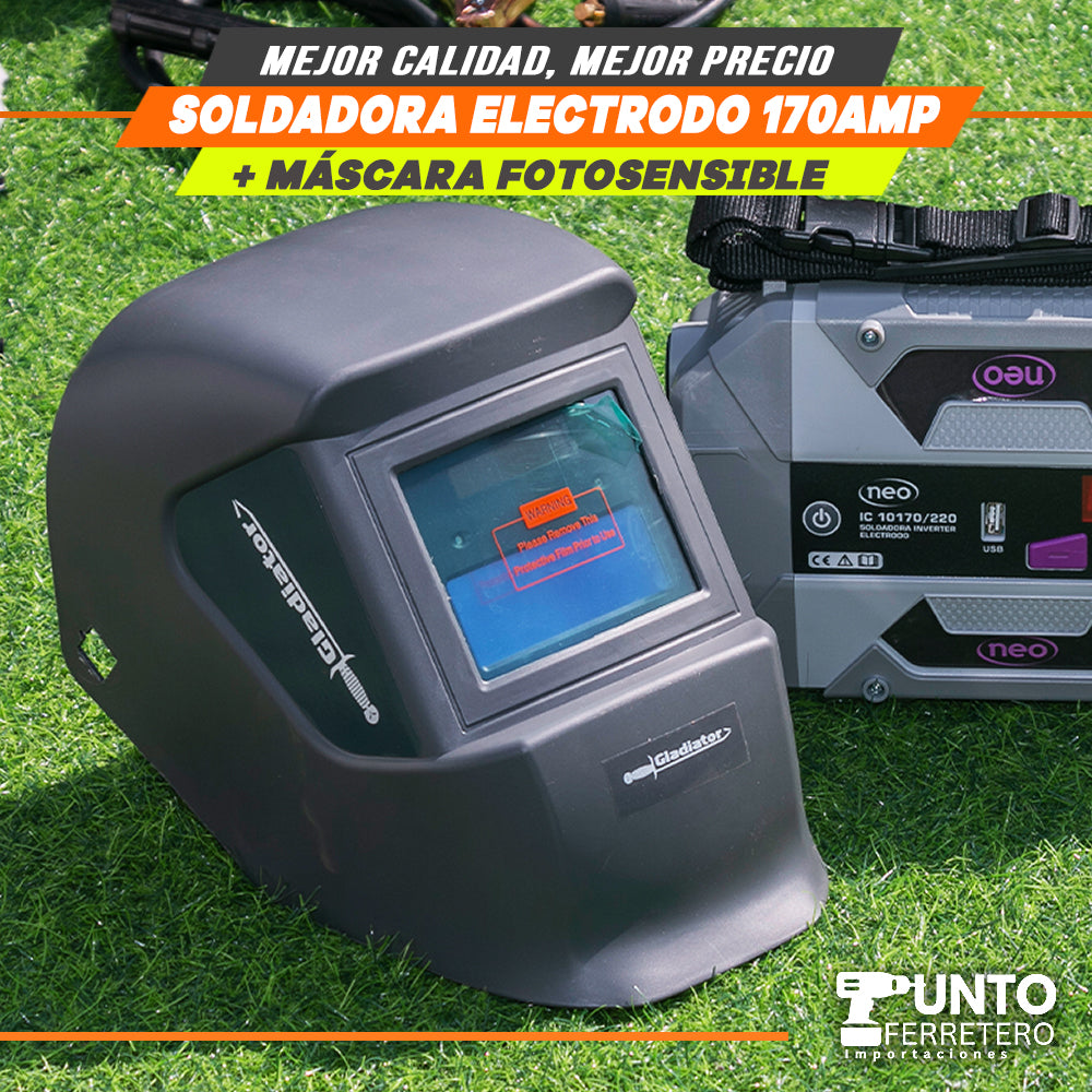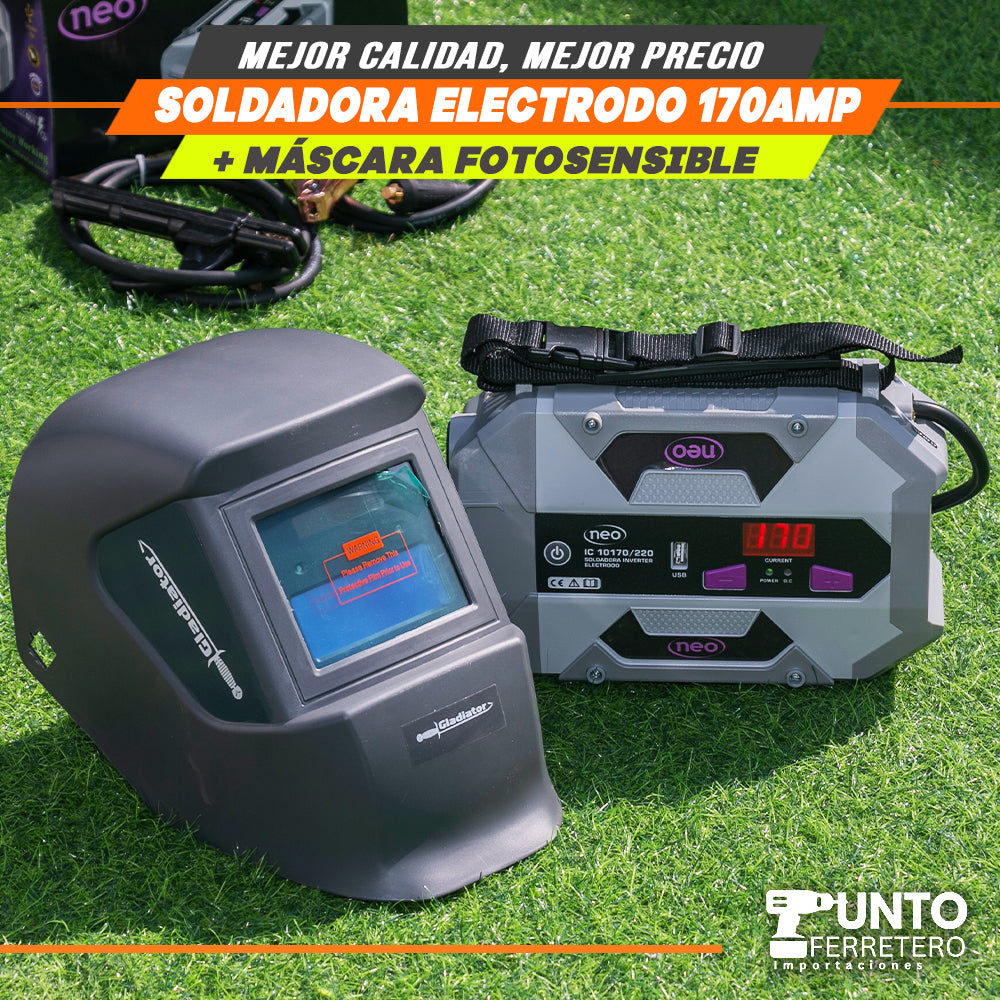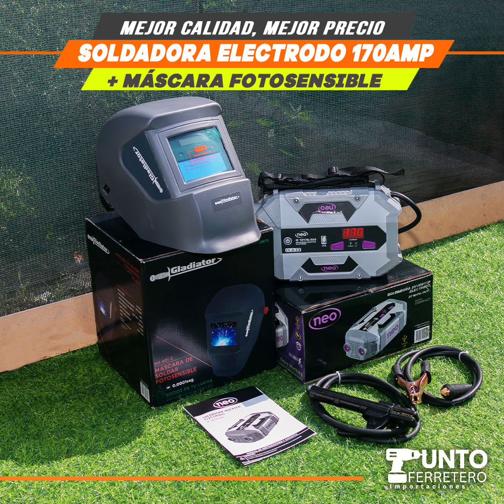 soldadora neo 170 amperios mma + mascara fotocensible 2 sensores uso industrial