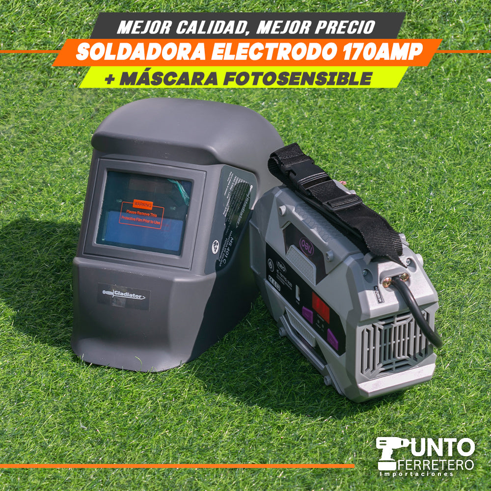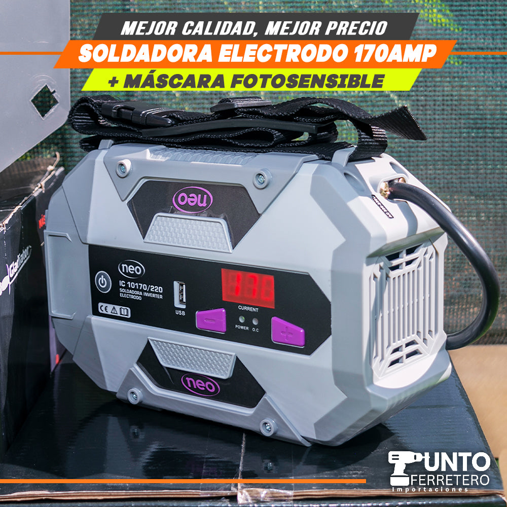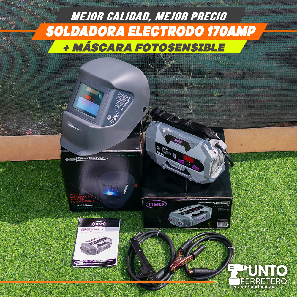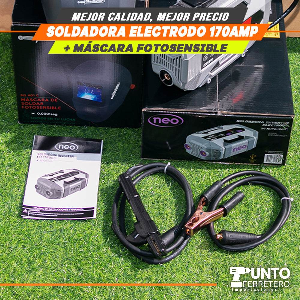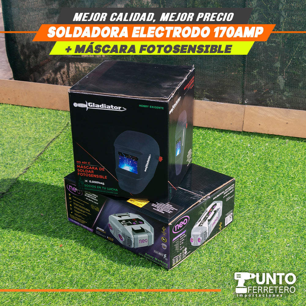 soldadora neo 170 amperios mma + mascara fotocensible 2 sensores uso industrial